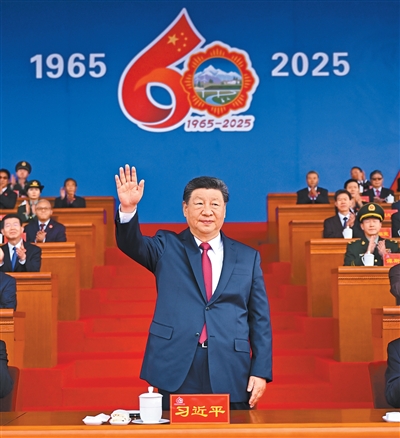 8月21日上午,西藏各族各界干部群眾約2萬(wàn)人歡聚拉薩市布達(dá)拉宮廣場(chǎng),熱烈慶祝西藏自治區(qū)成立60周年。中共中央總書(shū)記、國(guó)家主席、中央軍委主席習(xí)近平出席慶祝大會(huì)。王滬寧、蔡奇出席大會(huì)。