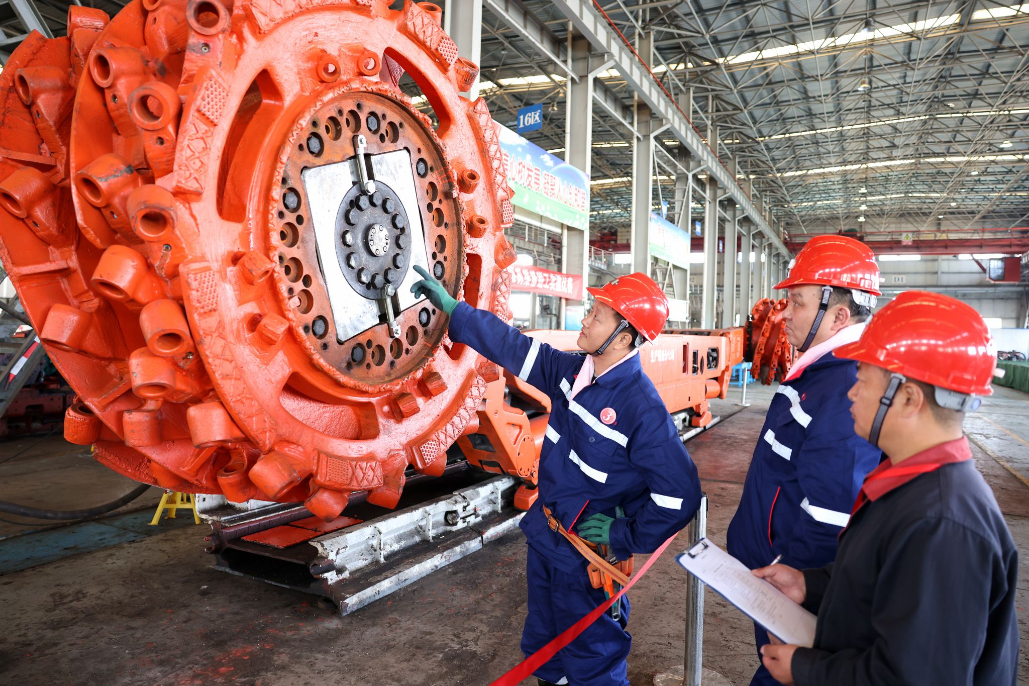 圖為第十三屆參賽師徒進(jìn)行掘錨機(jī)維修鉗工實(shí)操比賽