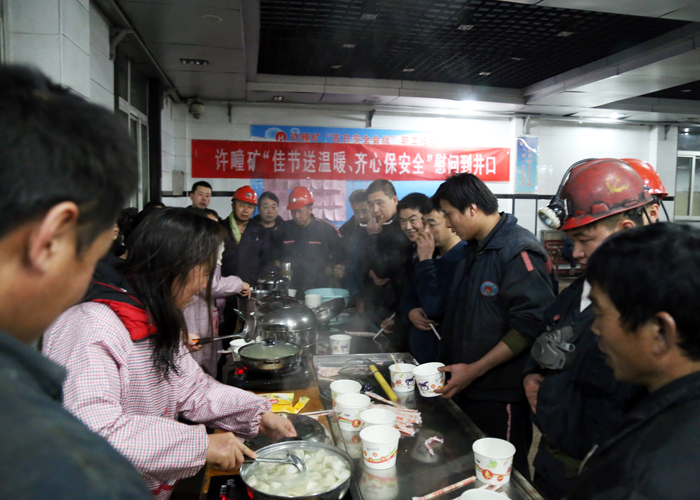 許疃礦開展春節(jié)井口慰問,“好香!又煮餃子了,快,我們趕快過去!”兩位剛升井的職工師傅向前跑去。從1月25日起,許疃礦開展了以“佳節(jié)送溫暖,齊心保安全”為主題的迎新井口慰問活動。一口口美味的餃子,一聲聲安全的叮囑,升入井的職工吃著、笑著。香噴噴的餃子、樂呵呵的笑聲,讓節(jié)日期間留守的職工師傅們,感受到了新年的味道和企業(yè)的關(guān)心。