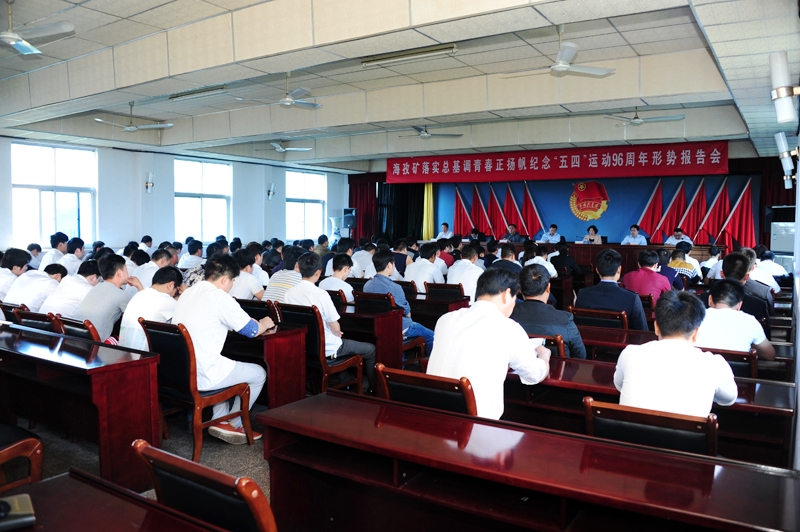 4月30日8點30分,伴隨著嘹亮的《淮北礦業(yè)之歌》聲,海孜礦紀念“五四”運動96周年形勢報告會在西四樓會議室如期召開。