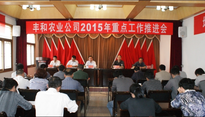 15日下午,豐和農(nóng)業(yè)公司在公司四樓會議室召開午2015年重點工作推進會,重點安排部署夏收夏種工作。公司領導、機關各部室負責人和基層各單位黨政負責人及副場長參加了會議。