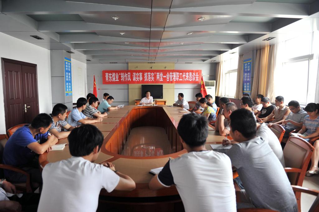 圖為青東煤業(yè)“轉(zhuǎn)作風(fēng) 謀實(shí)事 抓落實(shí)”兩堂一舍管理職工代表懇談會(huì)現(xiàn)場(chǎng)。