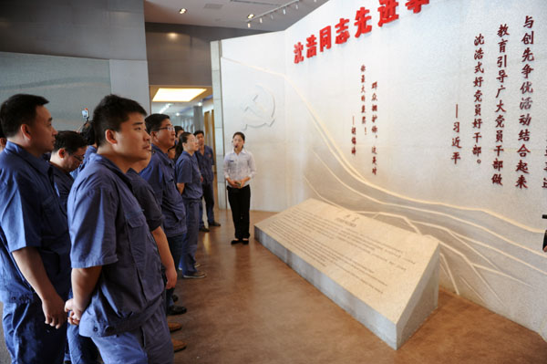 黨員干部首先來到“沈浩同志先進(jìn)事跡陳列館”,參觀了沈浩同志生前工作、生活以及帶領(lǐng)小崗人民艱苦奮斗、加快發(fā)展的事跡展覽,認(rèn)真聽取了講解員對(duì)沈浩同志事跡的介紹。沈浩同志在小崗村任職6年,始終以黨和人民的事業(yè)為重,勤奮務(wù)實(shí)、無私奉獻(xiàn),用年輕的生命詮釋了一個(gè)共產(chǎn)黨員對(duì)黨和人民的無限忠誠,在廣大干部群眾中樹起了一座巍峨的豐碑,他用行動(dòng)詮釋了黨員干部的奉獻(xiàn)精神。調(diào)度信息中心黨支部書記莊主民深有感觸的說:“學(xué)習(xí)沈浩同志的先進(jìn)事跡,使我接受了一次心靈的洗禮。他全心全意為小崗村謀發(fā)展的勁頭和精神鼓舞了我,激勵(lì)了我,我將以沈浩同志為鏡,立足本職、扎根基層,爭做一名敢擔(dān)當(dāng)?shù)暮酶刹俊!?/p>