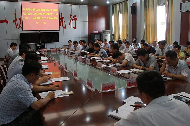 8月3日下午,臨渙礦召開專題會議,認(rèn)真?zhèn)鬟_貫徹淮北礦業(yè)錨網(wǎng)支護安全工作例會暨二季度“一通三防”、地測防治水工作例會精神。