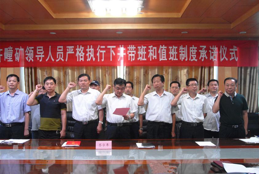 8月6日下午,許疃礦舉辦領(lǐng)導(dǎo)人員嚴(yán)格執(zhí)行下井帶班和值班制度承諾儀式。