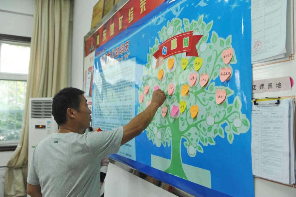 圖為該公司綜采一區(qū)職工將心愿貼在心愿樹上。