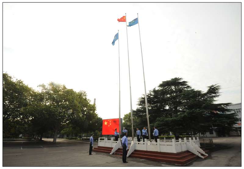 10月1日國慶節(jié),7點50分,伴著朝霞,朱莊礦由7名武保隊員組成的護旗隊,在大家地注視下,英姿勃發(fā)的昂首闊步前行,精神抖擻地護衛(wèi)著中華人民共和國國旗和淮北礦業(yè)旗走向位于工業(yè)廣場中心的升旗臺。