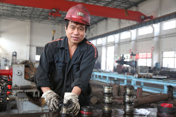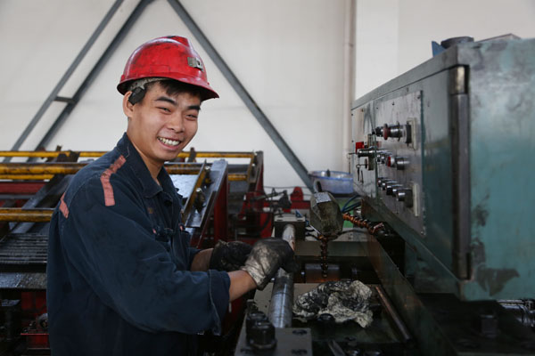 錨桿車間職工葛新礦正在對生產(chǎn)線進行調(diào)試。國慶節(jié)當天,他們生產(chǎn)錨桿6900根。