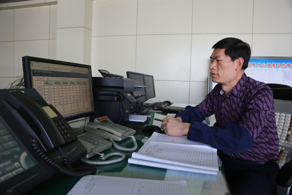 在安全生產(chǎn)信息中心,調(diào)度員葉克才正注視著電腦屏幕上的762工作面產(chǎn)量數(shù)據(jù)變化情況。國慶節(jié)當天,這個面共生產(chǎn)原煤3030噸。(責編:徐成貴)