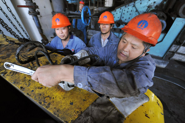10月12日,淮北選煤廠維修人員正在更換臥式沉降離心機(jī)部件。該廠提前備戰(zhàn)冬季洗煤生產(chǎn),把加強(qiáng)設(shè)備缺陷整改當(dāng)做重點(diǎn)工作來抓,針對設(shè)備防寒防凍的重點(diǎn)部位和薄弱環(huán)節(jié)制定嚴(yán)密的防范措施,保障冬季選煤生產(chǎn)。