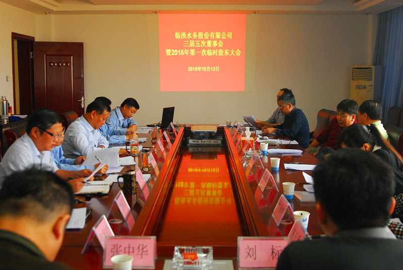 10月13日,臨渙水務(wù)公司在三樓會(huì)議室召開三屆五次董事會(huì)暨2015年第一次臨時(shí)股東大會(huì),淮北礦業(yè)、雙龍公司、國華集團(tuán)三家股東代表、董事、監(jiān)事及公司高管出席會(huì)議。