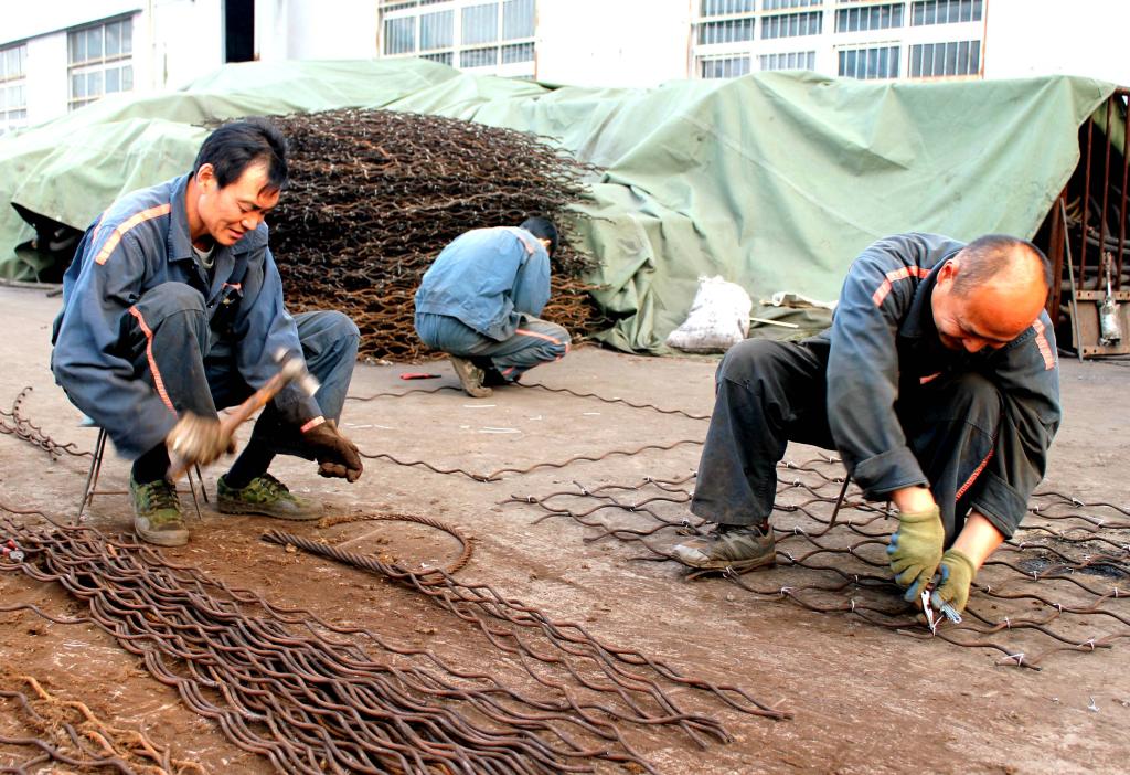 為保證安全生產(chǎn),在煤礦井下生產(chǎn)過(guò)程中使用的鋼絲繩磨損達(dá)到一定程度就會(huì)被強(qiáng)制報(bào)廢。這些鋼絲繩不能再使用后,通常是回收上井,當(dāng)做廢品材料來(lái)處理。楊柳煤業(yè)面對(duì)建礦以來(lái)堆積如山的廢舊鋼絲繩,不斷拓展思路,思考新辦法,在充分論證的基礎(chǔ)上組織機(jī)廠統(tǒng)一加工改造,將鋼絲繩分段切割后拆分成6股,編織成網(wǎng),再送到井下代替部分鋼笆網(wǎng)使用,對(duì)煤巷兩幫進(jìn)行支護(hù),節(jié)省了大筆材料投入,讓這些廢舊鋼絲繩繼續(xù)發(fā)揮出了新價(jià)值。