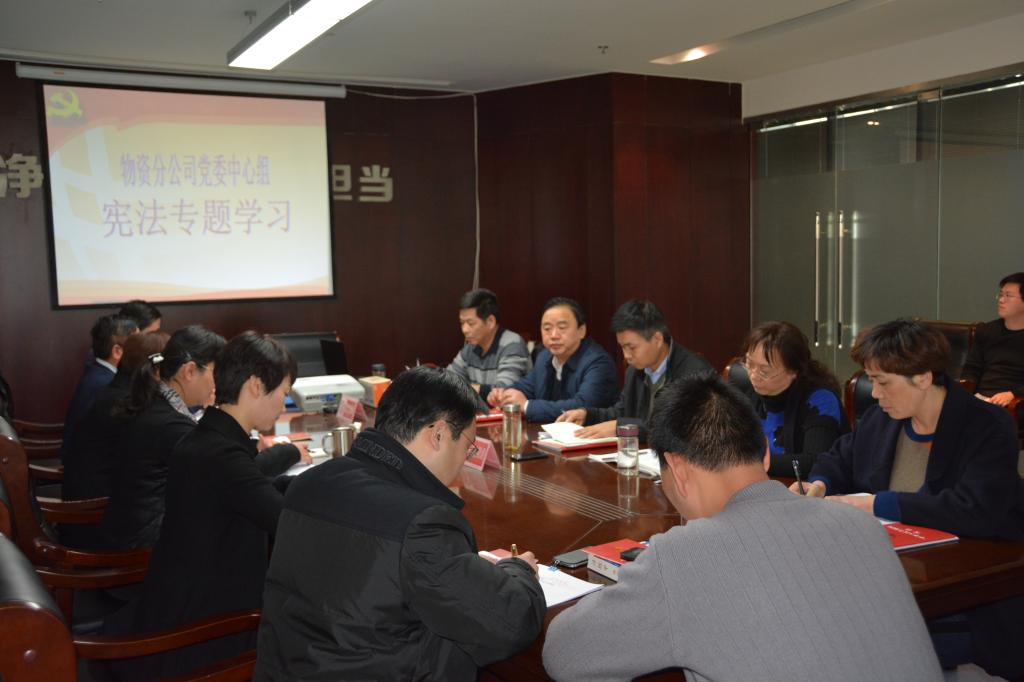 12月4日,根據(jù)集團(tuán)公司要求,物資分公司結(jié)合實(shí)際,在公司七樓會(huì)議室,開展了黨委中心組憲法專題學(xué)習(xí),物資分公司在家的領(lǐng)導(dǎo)及中心組其他成員20多人參加了專題學(xué)習(xí)。