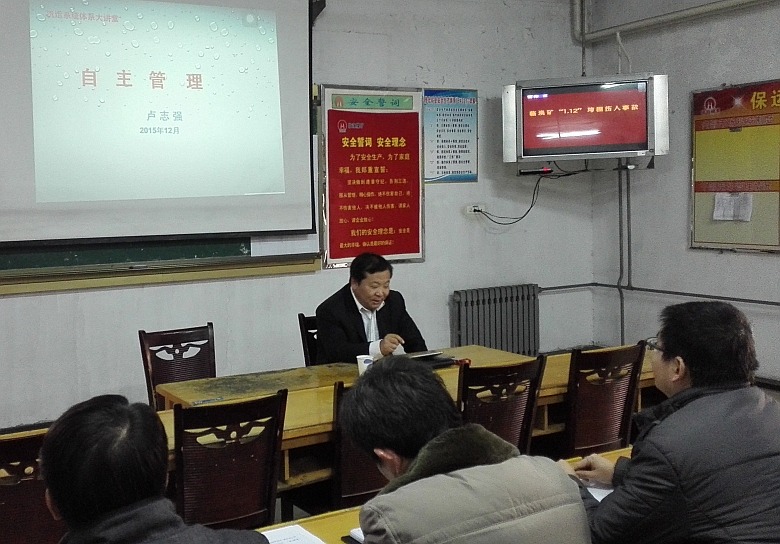 在保運(yùn)一區(qū)會(huì)議室,副礦長盧志強(qiáng)以自主管理為主題,結(jié)合多年來安全管理和機(jī)電運(yùn)輸管理工作的經(jīng)驗(yàn)和體會(huì),以課件的形式,圖文并茂地從自主管理的意義、要素和系統(tǒng)內(nèi)自主管理的實(shí)例三個(gè)方面進(jìn)行了講解。通過授課,進(jìn)一步提高了機(jī)運(yùn)系統(tǒng)班隊(duì)長以上管理人員對科區(qū)、班隊(duì)管理的認(rèn)識(shí),為安全生產(chǎn)打下了基礎(chǔ)。