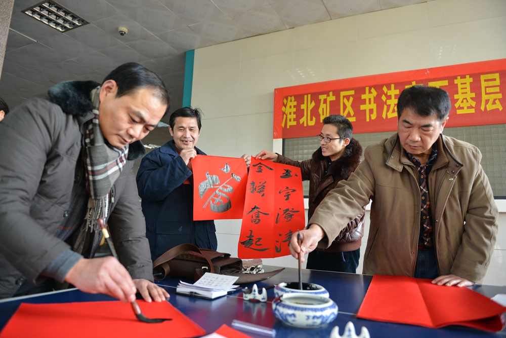 2月1日,淮北礦業(yè)工會組織礦區(qū)書法家們來到孫疃礦,為職工義務(wù)寫春聯(lián)。為讓更多的職工拿到春聯(lián),該礦將寫春聯(lián)的地點放在職工最多的食堂?;顒蝇F(xiàn)場,職工們擠在書法家的身邊,熱心的為他們鋪紙、添墨。書法家們將朗朗上口、喜慶吉祥、祝福平安的春聯(lián)送到職工手中,為職工送去猴年的問候和平安的祝福,并叮囑職工注意安全生產(chǎn)。