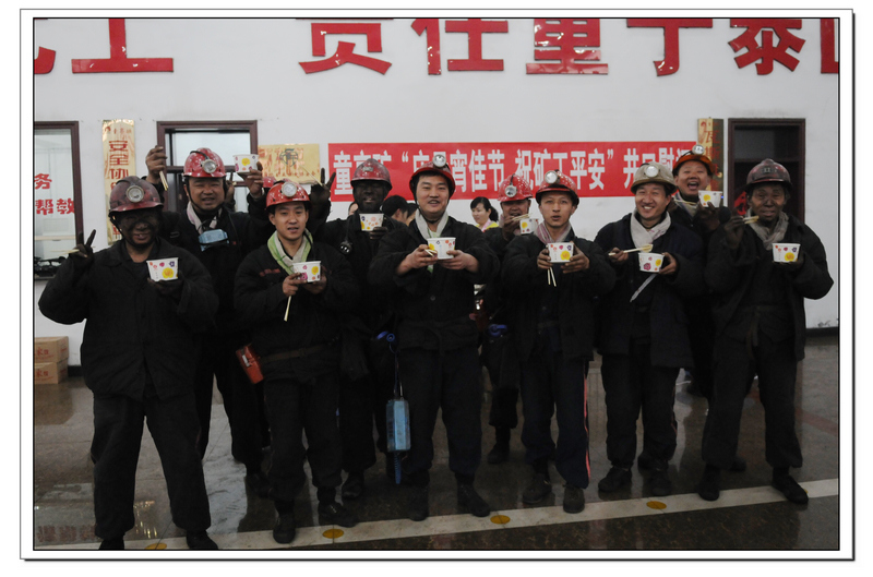 “師傅辛苦了吃點熱湯圓和水餃再下井,下井要注意安全哦!”2月22日,農(nóng)歷正月十五早上6點,在童亭礦副井口女工協(xié)安員們把一碗碗熱氣騰騰的元宵、水餃端到上下井的礦工手中,讓堅守一線的礦工兄弟們感受到濃濃的關愛和親情。圖為礦工們在活動現(xiàn)場高興的合影。