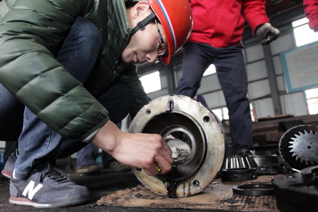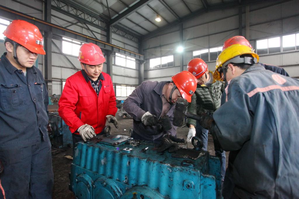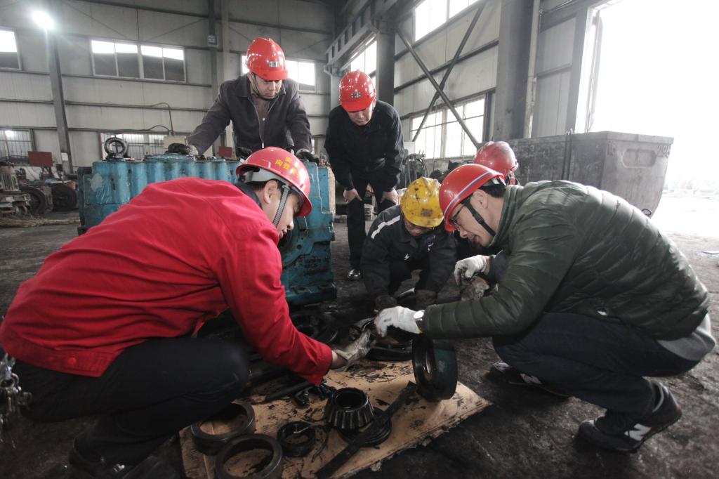 2月19日,筆者來到機(jī)電科機(jī)修廠試圖尋找新聞線索,當(dāng)經(jīng)過精修車間門口時(shí),頓時(shí)被圍在齒輪箱旁邊的一群人所吸引,上前一看,既有熟悉的領(lǐng)導(dǎo)干部、工人師傅,也有不熟悉的一位技術(shù)人員在那里指點(diǎn)著什么。通過采訪得知,原來這位技術(shù)人員是礦上專程從廠家省區(qū)域代理邀請過來,專門針對這款德系的SEW齒輪箱維修做技術(shù)指導(dǎo)的。以往此類設(shè)備的維修工作都是通過外修完成的,每臺維修費(fèi)用都在6萬元左右。機(jī)電科干群看在眼里,急在心里,更多的是心疼。為了解決這一技術(shù)難題,該科干群勵(lì)志要通過各種渠道“啃”下這塊“硬骨頭”,自己當(dāng)“醫(yī)生”??祁I(lǐng)導(dǎo)通過售后服務(wù)、上網(wǎng)查詢等途徑,和代理商多次交涉,最終說服代理商,派售后技術(shù)人進(jìn)行免費(fèi)維修技術(shù)指導(dǎo)。