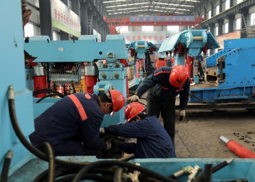 2月24日,許疃礦修護(hù)準(zhǔn)備區(qū)職工在礦機(jī)廠忙著拆裝、打運(yùn)72312工作面超前液壓支架,這是該礦深化工藝改革的開年之戰(zhàn)。