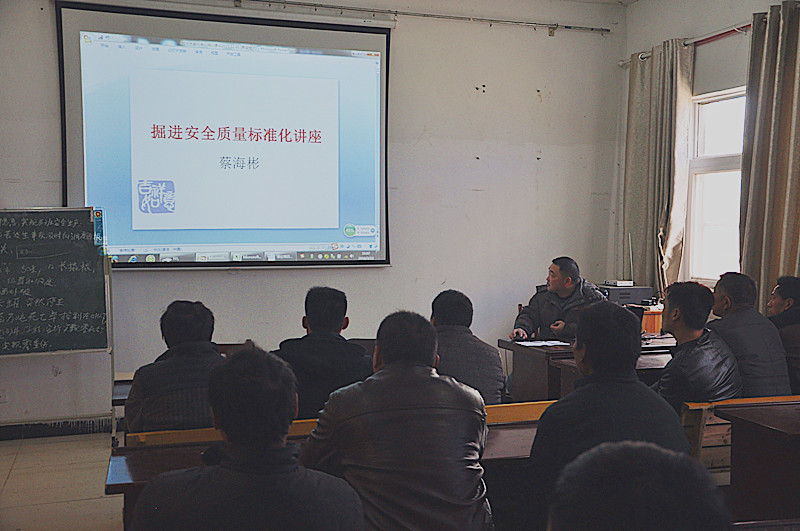 圖片為:3月11日,鄒莊礦建項(xiàng)目部在職工學(xué)習(xí)室開(kāi)展掘進(jìn)安全質(zhì)量標(biāo)準(zhǔn)化宣貫活動(dòng)。