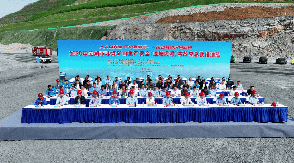 演練模擬無為市某月以來受降雨影響,突發(fā)惡劣天氣導(dǎo)致華塑采礦作業(yè)區(qū)域邊坡坍塌,引發(fā)人員被困、車輛、機(jī)械傾覆、火災(zāi)等事故情景。全程嚴(yán)格按照險(xiǎn)情確認(rèn)、初期處置、預(yù)案啟動(dòng)、應(yīng)急自救等程序展開,參演人員緊張有序、快速響應(yīng),在通力配合下,歷經(jīng)一個(gè)小時(shí),圓滿完成任務(wù),達(dá)到預(yù)期效果。