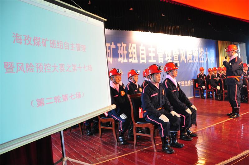 4月20日下午,從海孜礦西四樓會議室里傳出陣陣鏗鏘有力的口號聲,礦第二輪第七場班組自主管理暨風險預控管理大賽在通風區(qū)施工隊和綜采三區(qū)生產一隊之間展開。