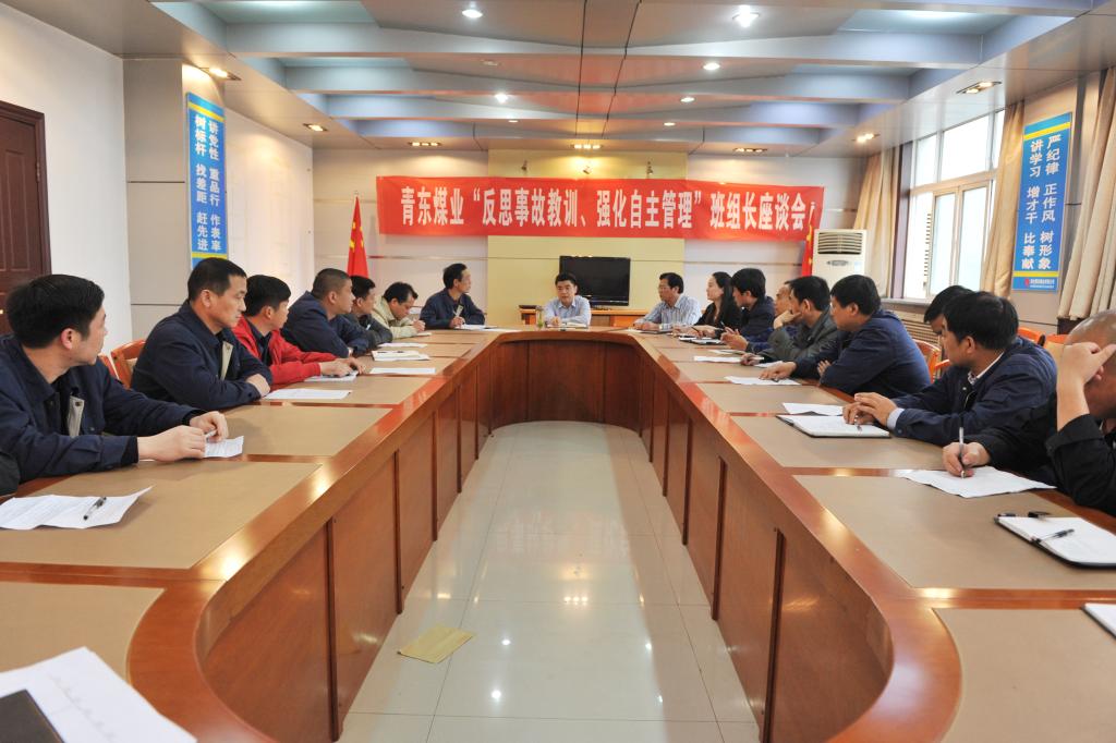 4月20日,青東煤業(yè)在黨委會議室召開“反思事故教訓(xùn)、強化自主管理”班組長座談會。該公司黨委書記潘富寶,紀(jì)委書記鄭留艮,部分車間工會主席和各單位班組長代表參加了座談。