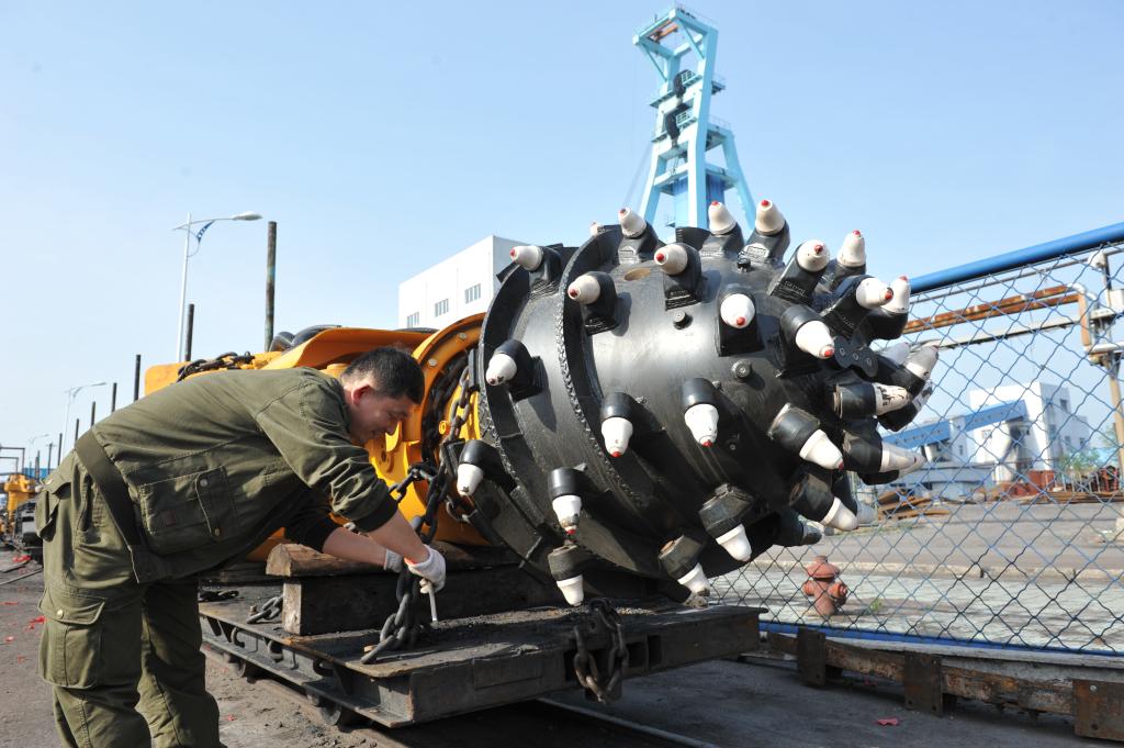 4月22日,青東煤業(yè)EBZ-200綜掘機(jī)整裝準(zhǔn)備下井,該設(shè)備適用大角度掘進(jìn)施工,將有效提升掘進(jìn)效率,為緩解生產(chǎn)接替緊張局面提供設(shè)備保障。圖為工作人員在綜掘機(jī)下井前緊固裝車錨鏈。