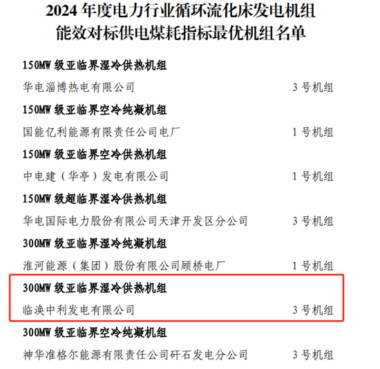 近日,中國電力企業(yè)聯(lián)合會發(fā)布2024年度電力行業(yè)循環(huán)流化床發(fā)電機組能效對標優(yōu)勝機組名單,中利發(fā)電公司3號機組榮獲“300MW級亞臨界濕冷供熱機組”5A級優(yōu)勝機組稱號。