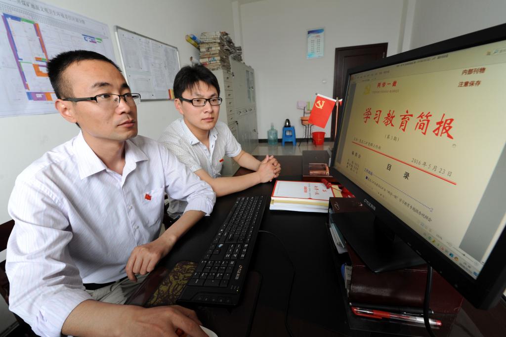 5月23日,袁店二礦兩名黨員在閱讀自采自編自辦的《學(xué)習(xí)教育簡(jiǎn)報(bào)》,這個(gè)電子版刊物多角度、多形式、全方位展現(xiàn)了該礦“兩學(xué)一做”學(xué)習(xí)教育開展情況。據(jù)悉,袁店二礦在“兩學(xué)一做”學(xué)習(xí)教育中,以黨課評(píng)比、報(bào)告會(huì)和《學(xué)習(xí)教育簡(jiǎn)報(bào)》等為載體,緊貼基層實(shí)際和特點(diǎn)搞好結(jié)合滲透,真正把黨的思想政治建設(shè)抓在日常、嚴(yán)在經(jīng)常。