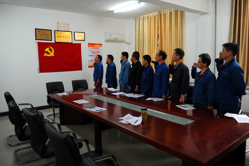 渦北選煤廠持續(xù)推進(jìn)“兩學(xué)一做”學(xué)習(xí)教育,開展形式多樣、內(nèi)容豐富、學(xué)與做相結(jié)合的系列學(xué)習(xí)教育。圖為該廠煤管科黨支部“重溫入黨誓詞”活動(dòng)。