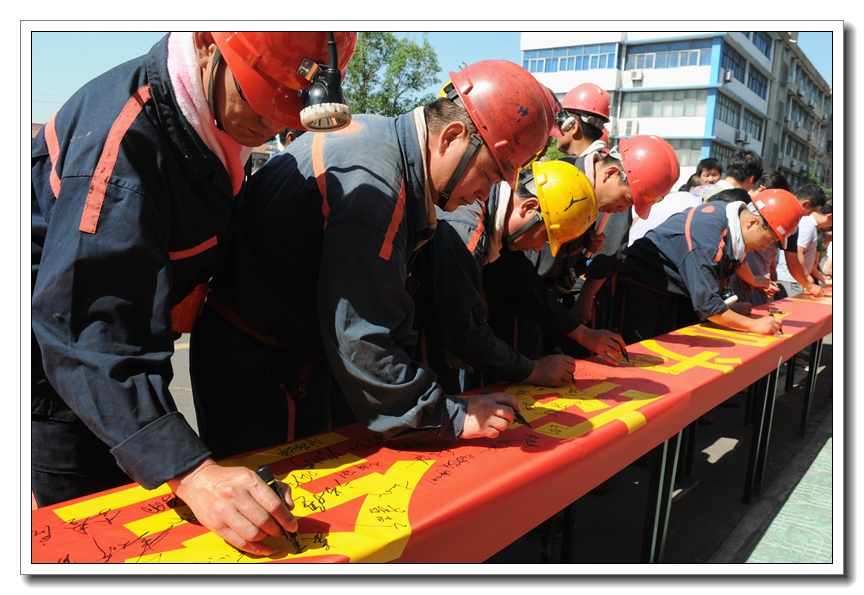 最后,該礦干部職工在印有“安全壓倒一切、一切為安全讓路”的橫幅上,鄭重的簽下了自己的安全承諾。