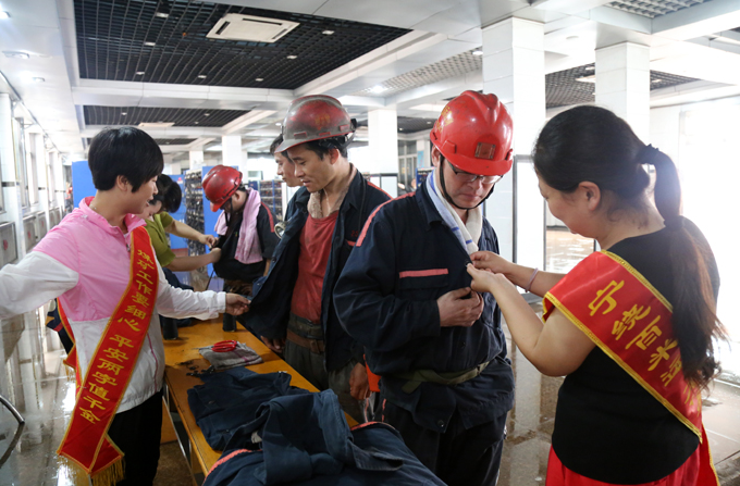 礦協(xié)安員的姐妹們首先來(lái)到綜掘三區(qū)中班班前會(huì),在現(xiàn)場(chǎng)以安全生產(chǎn)月知識(shí)問(wèn)答,向職工們宣傳貫徹安全生產(chǎn)月文件精神,活動(dòng)目的和意義;以崗位風(fēng)險(xiǎn)預(yù)控及手指口述安全確認(rèn)提問(wèn),提高職工的崗位安全意識(shí);以崗位技能、業(yè)務(wù)本領(lǐng)抽問(wèn),規(guī)范職工崗位操作。在活動(dòng)過(guò)程中,以“問(wèn)安全、說(shuō)安全”的形式,在一問(wèn)一答中,送上精美禮品的同時(shí),說(shuō)一聲:“上班注意安全!”。隨后,協(xié)安員們又來(lái)到井口,擺好桌臺(tái),準(zhǔn)備好針線,為升入井的職工們進(jìn)行“愛(ài)心縫補(bǔ)”。有的少扣子、有的爛口子,協(xié)安員們一針一線,一絲不茍縫合口子,盯好扣子。在縫補(bǔ)過(guò)程中,叮囑安全,為職工們敲響安全警鐘,提醒大家:安全月期間,大家要牢記囑托,在工作中時(shí)刻繃緊安全弦,提高安全生產(chǎn)意識(shí),堅(jiān)決杜絕三違行為,“讓親人放心,企業(yè)放心”,確保礦井安全生產(chǎn)平穩(wěn)發(fā)展。