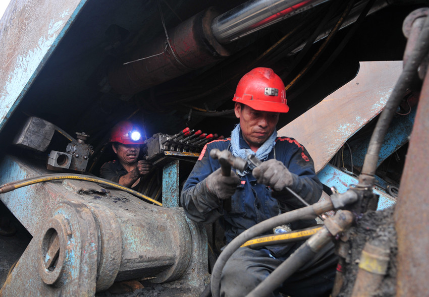 袁店二礦面對(duì)嚴(yán)峻的經(jīng)營(yíng)形勢(shì),全面聚焦雙效,從嚴(yán)控制材料費(fèi)、電費(fèi)、修理費(fèi)、安拆費(fèi)、非生產(chǎn)性支出,最大限度降低生產(chǎn)成本。圖為該礦綜采二區(qū)職工在維修液壓支架,僅此一項(xiàng)就為礦井節(jié)約修理費(fèi)用370余萬(wàn)元。