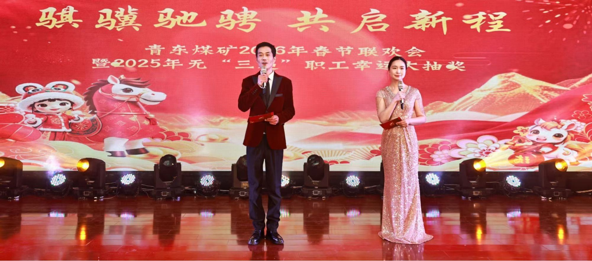 馬躍新程,春滿礦區(qū)。2月6日,青東礦2026年春節(jié)聯(lián)歡會(huì)暨2025年無“三違”職工幸運(yùn)大抽獎(jiǎng)活動(dòng)在礦二樓職教會(huì)議室隆重舉行?;顒?dòng)現(xiàn)場(chǎng)座無虛席、暖意融融,洋溢著喜慶祥和的節(jié)日氛圍,全礦干部職工及家屬齊聚一堂,共賞文藝盛宴,共享安全碩果。