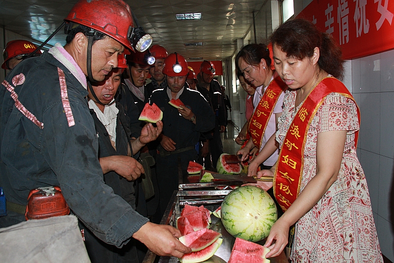礦工會(huì)認(rèn)真貫徹落實(shí)淮北礦業(yè)《關(guān)于加強(qiáng)防暑降溫工作的通知》精神和礦防暑降溫專題會(huì)議精神,調(diào)動(dòng)各車間工會(huì)和全礦婦女協(xié)安員,迅速行動(dòng),開(kāi)展形式多樣的送清涼活動(dòng)。在副井口開(kāi)展了“高溫送清涼,親情囑安全”活動(dòng),組織婦女協(xié)安員冒著高溫,把西瓜運(yùn)送到井口,在職工上下井高峰時(shí)期給職工消暑解渴,并叮囑他們注意休息,按章作業(yè),確保安全生產(chǎn)。通過(guò)“送貨上門”,把清涼油、風(fēng)油精、西瓜等防暑降溫物品送到每一家基層科區(qū)和地面重點(diǎn)車間、崗點(diǎn)。配合物業(yè)科在副井口設(shè)立了茶水站,免費(fèi)向職工供應(yīng)綠豆湯、茶葉茶、白糖水,職工下井前、升井后都能隨時(shí)補(bǔ)充水分。與此同時(shí),加強(qiáng)了“兩堂一舍”管理,強(qiáng)化日常監(jiān)督檢查,最大限度的為職工創(chuàng)造清涼舒適的工作、休息環(huán)境,確保職工在高溫季節(jié)里能夠吃得好、睡得香、洗得舒心,為安全生產(chǎn)提供可靠的后勤服務(wù)保障。
