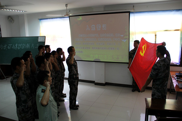 報(bào)告會(huì)開始前,舉行了新黨員入黨宣誓、正式黨員重溫入黨誓詞儀式。李槽坊中隊(duì)新老黨員面對(duì)鮮紅的黨旗進(jìn)行了莊嚴(yán)宣誓,更加堅(jiān)定了“堅(jiān)守理想信念,帶頭率先垂范”做一名有堅(jiān)定信仰的共產(chǎn)黨員的錚錚誓言。