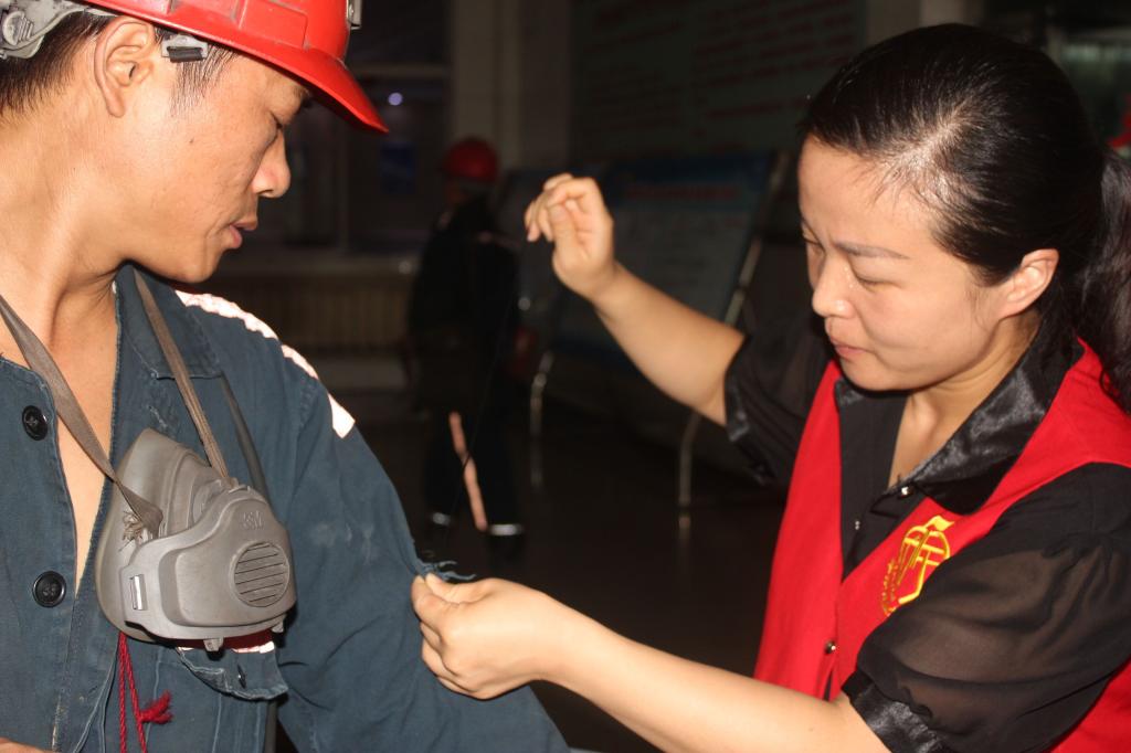 協(xié)管姐妹們穿針引線,一絲不茍。為及時服務(wù)好井下工作的廣大職工,協(xié)安會的姐妹們會不定期地到井口為職工縫補(bǔ)工作服、釘紐扣、囑安全,提醒職工按章作業(yè),注意安全,讓職工們感受到親情的溫暖。