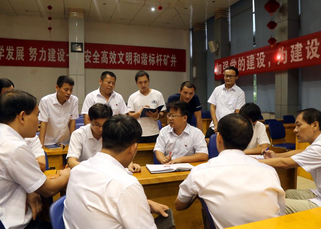 上圖:為黨代表,該礦通防副總王慶永(中),在傾聽黨員干部職工的建議和祝福