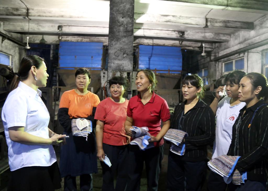 上圖:為黨代表,該礦黨群工作部女工主管郭嫻聽取該礦選矸隊(duì)女工們的建議和祝福