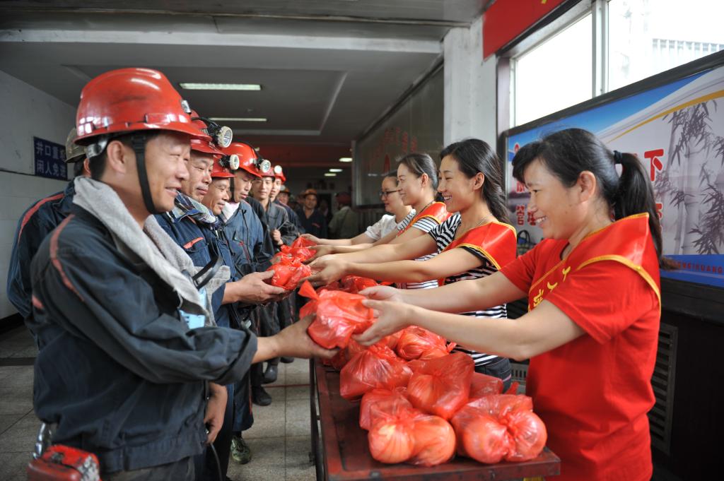 9月15日,中秋佳節(jié)之際,青東煤業(yè)組織開展“慶中秋、送祝福、囑安全”慰問活動,向堅守在節(jié)日安全生產(chǎn)崗位上的干部職工送上象征平安、和美的月餅、蘋果等慰問品,叮囑他們規(guī)范操作,守衛(wèi)安全。圖為協(xié)安員為下井的職工師傅送上慰問品和節(jié)日祝福。