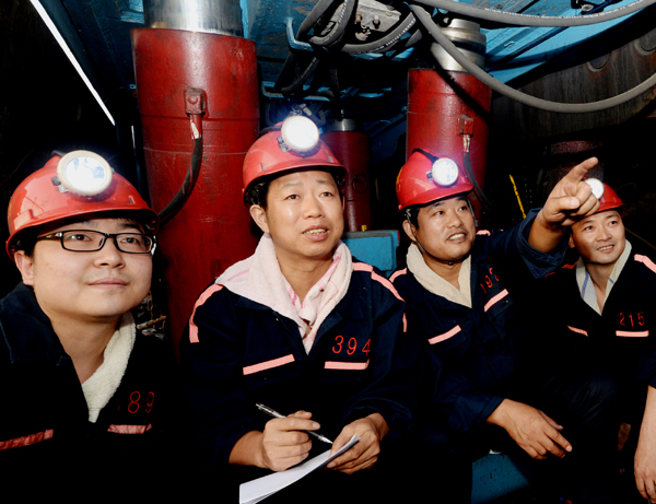 圖為該區(qū)黨支部班子正在研究綜采支架拆卸安裝。