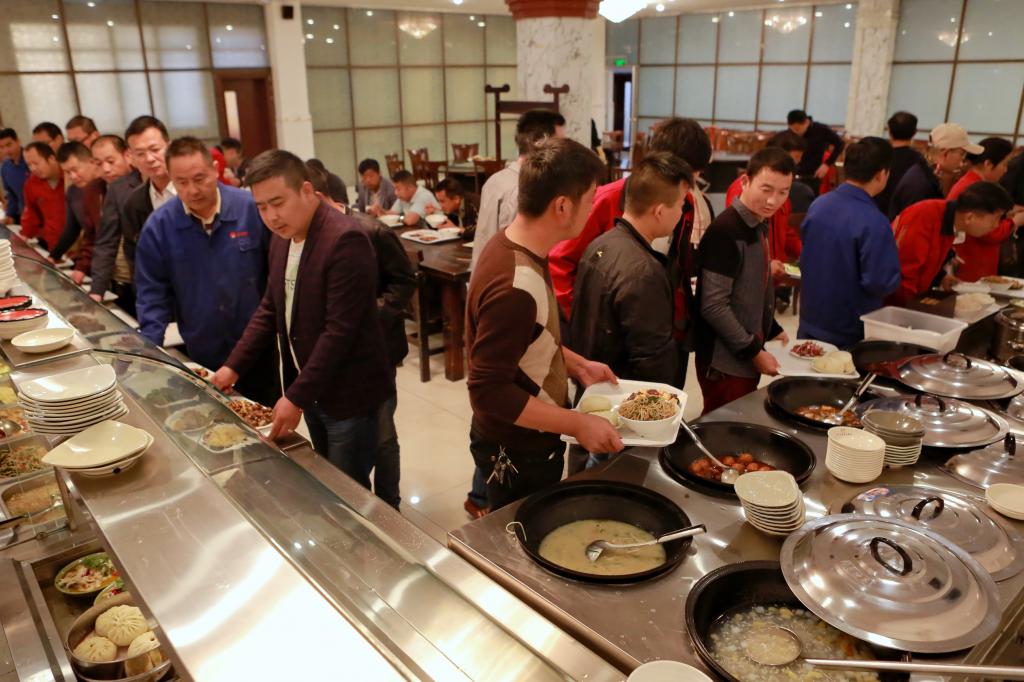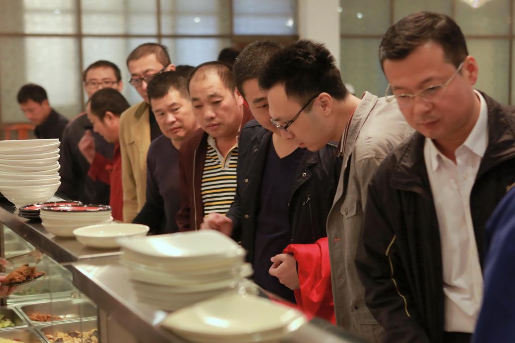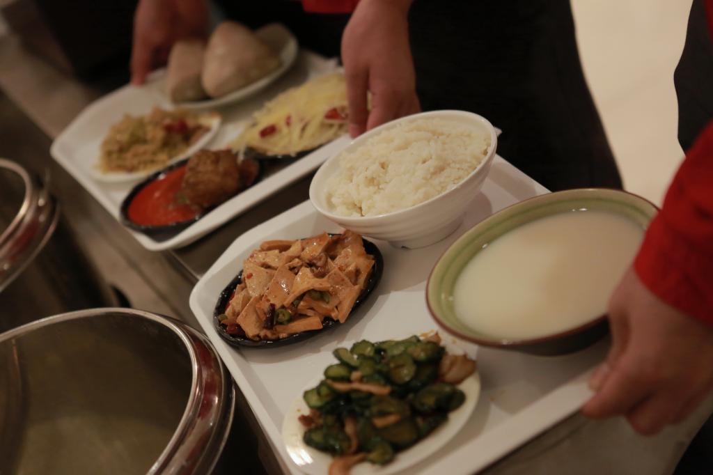 10月10日中午,渦北礦職工餐廳二樓自選廳內(nèi)人頭攢動,就餐人員盡然有序地排隊挑選心儀的飯菜。