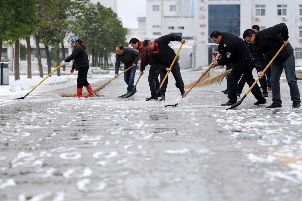 11月23日,袁店二礦物業(yè)公司職工在鏟除路面冰雪。當日,該礦物業(yè)公司組織職工開展礦區(qū)主要道路的積雪清掃工作,確保職工及家屬出行安全。11月22日下午至23日凌晨,皖北地區(qū)迎來了今年冬天首場降雪。(責編:徐成貴)