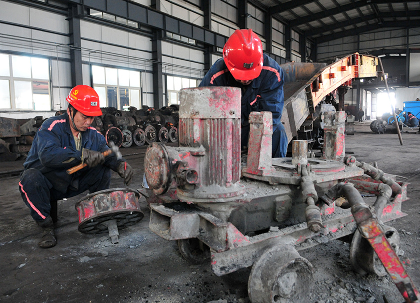袁店二礦全面深化內(nèi)部市場(chǎng)化運(yùn)作,變“發(fā)工資”為“掙工資”,以經(jīng)濟(jì)杠桿激發(fā)全員創(chuàng)效的積極性,增強(qiáng)企業(yè)降本增效、健康發(fā)展的內(nèi)生動(dòng)力。圖為該礦機(jī)廠職工在維修噴漿機(jī)。