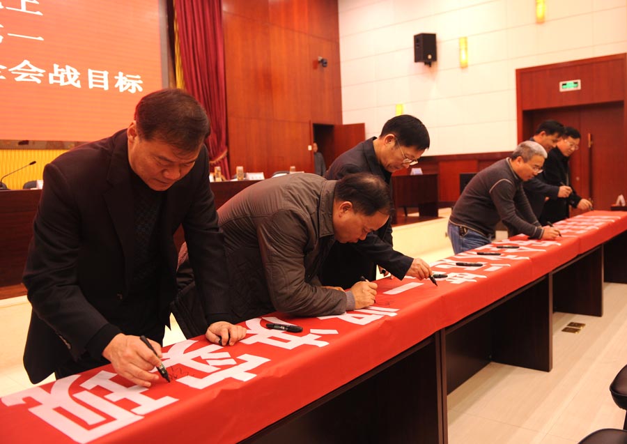 會議的最后,全體與會人員在寫有“生命至高無上,安全永遠(yuǎn)第一,堅(jiān)決實(shí)現(xiàn)百日安全會戰(zhàn)目標(biāo)”的條幅上鄭重簽名。