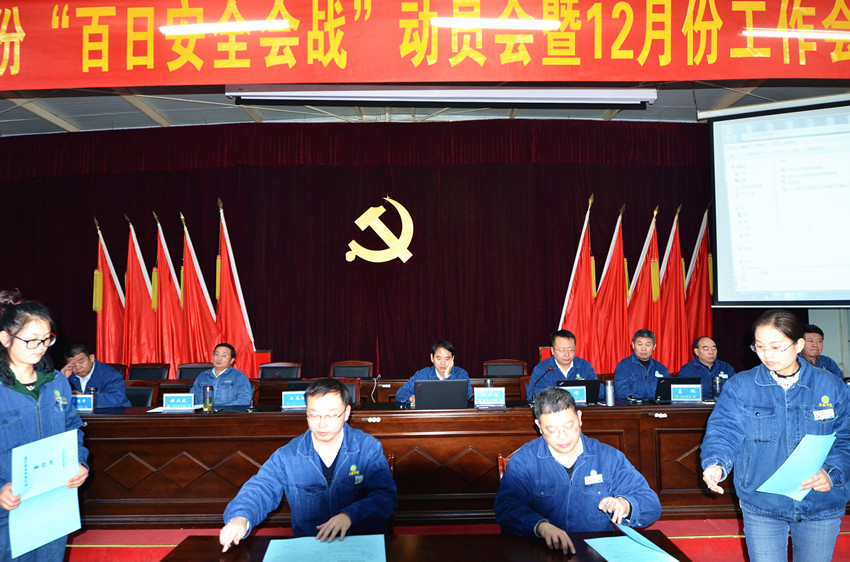 12月2日上午,華塑股份召開“百日安全會戰(zhàn)”動員大會暨12月份工作會議。傳達貫徹集團公司百日安全會戰(zhàn)動員大會精神,總結(jié)公司11月份安全生產(chǎn)經(jīng)營情況,安排部署12月份具體工作。動員廣大干群強化兩個規(guī)范,堅定“三零”目標,振奮精神、集中精力,全面打贏百日安全攻堅戰(zhàn),開創(chuàng)華塑股份公司安全生產(chǎn)新局面。公司副主管以上管技人員參加會議。