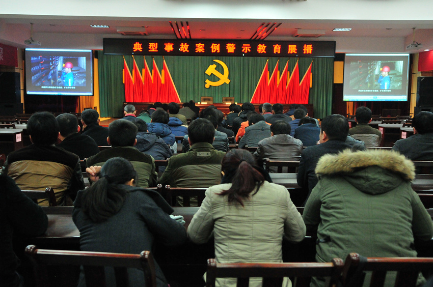 袁店二礦以“百日安全會戰(zhàn)”為契機,深入開展多種形式的安全警示教育活動,為職工敲響安全警鐘,堅決防范各類事故發(fā)生,確保實現(xiàn)“四零”目標。圖為職工在觀看典型事故案例警示教育片。
