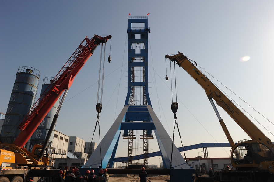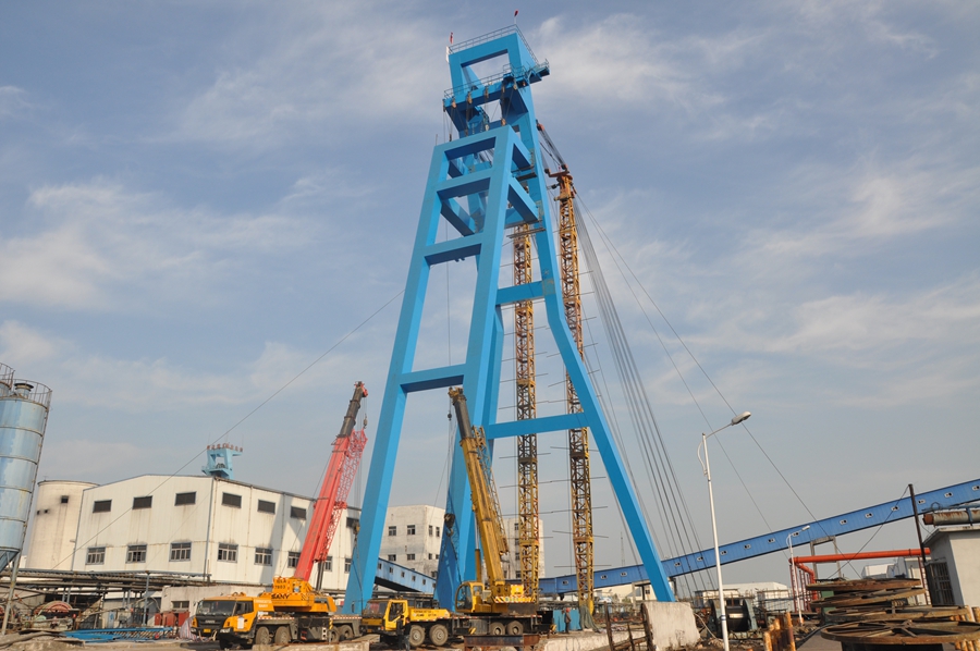12月9日,工程建設(shè)公司安裝分公司安創(chuàng)項目部吊裝的高60米,總重480噸的袁一新主井主、副斜架順利合攏,標(biāo)志著該礦新主井井架吊裝順利完成。在該井架吊裝施工過程中,該項目部克服施工場地環(huán)境復(fù)雜、重型設(shè)備多等困難,抓住有利天氣,嚴格措施、合理組織、倒排工期,確保了主、副斜井架的精確對接。