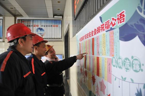 在桃園礦井口候罐室,一張張五彩卡片拼貼成的心愿墻格外引人注目,吸引上下井的職工駐足觀看,一句句安全祝福映入眼簾、觸動心間。
