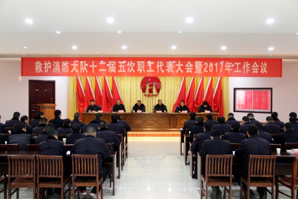 1月16日,救護(hù)消防大隊召開十二屆五次職工代表暨2017年工作會議,審議行政工作報告、工會工作報告等八項議案,總結(jié)回顧2016年工作,安排部署2017年各項工作。